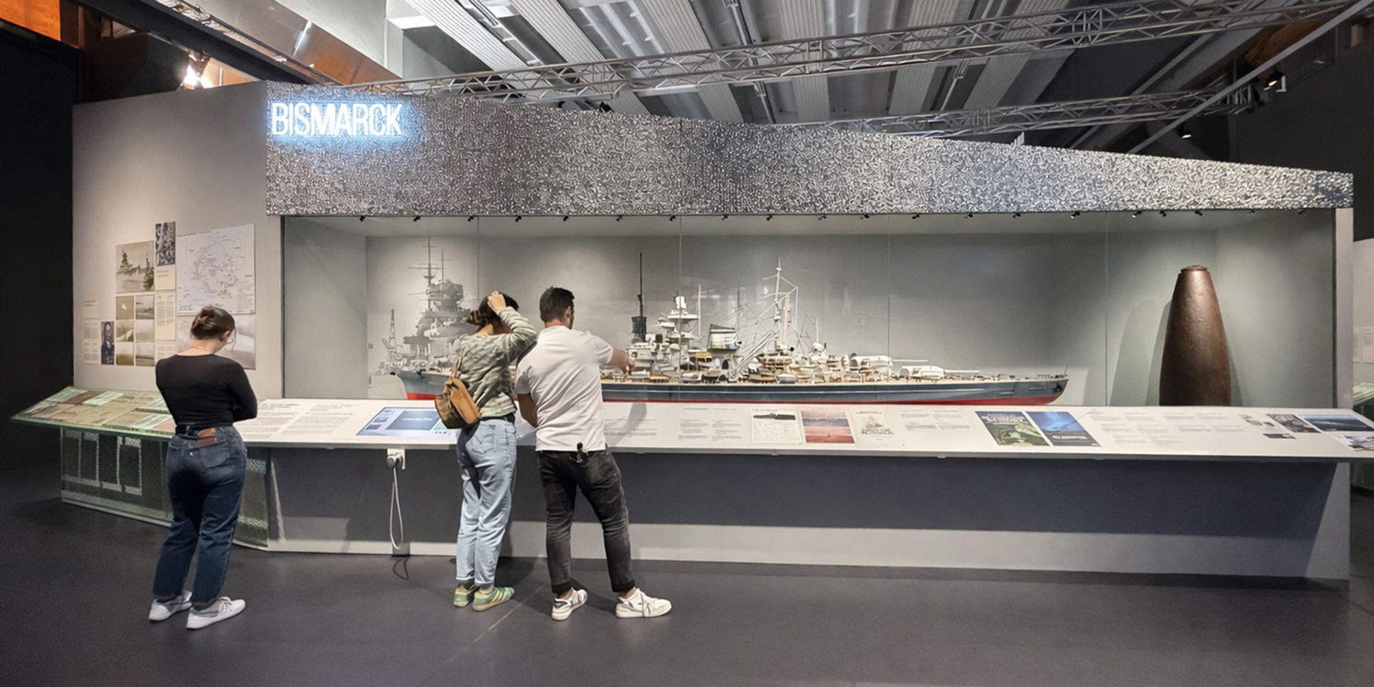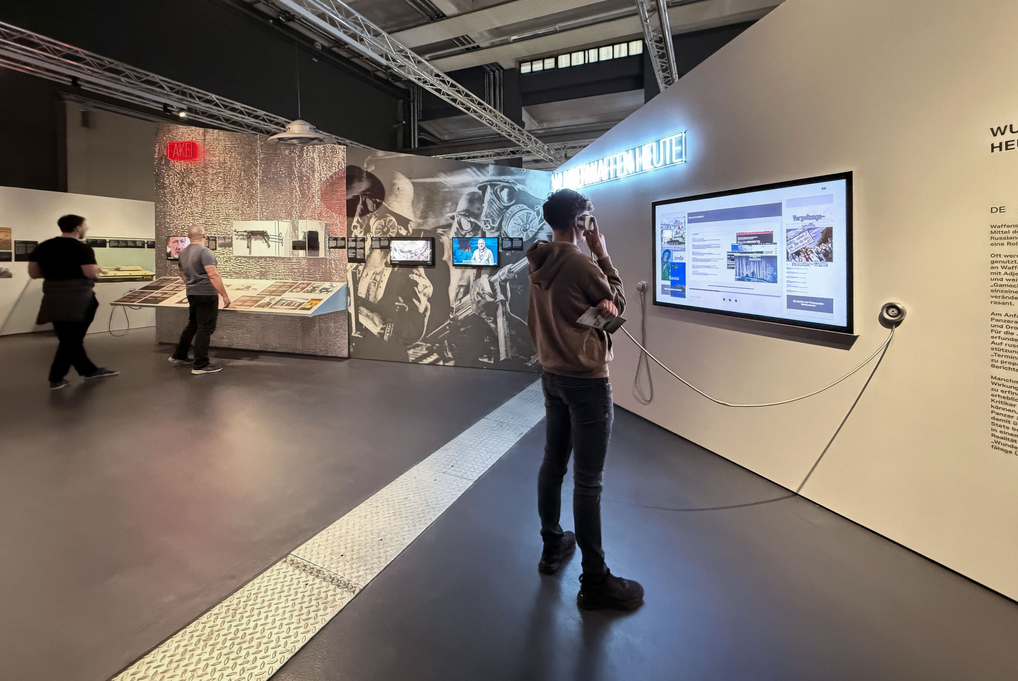Unsere Szenografie übersetzt diese Fragestellung in einen präzise gegliederten Raum. Technische Artefakte und mediale Narrative werden in Beziehung gesetzt, industrielle Materialien und eine zurückhaltend markante Farbcodierung strukturieren die Dramaturgie. Ziel ist es, die historische Faszinationsgeschichte nicht zu reproduzieren, sondern ihre Mechanismen offenzulegen und den Blick auf die zerstörerischen Folgen des nationalsozialistischen Vernichtungskrieges zu lenken.